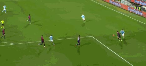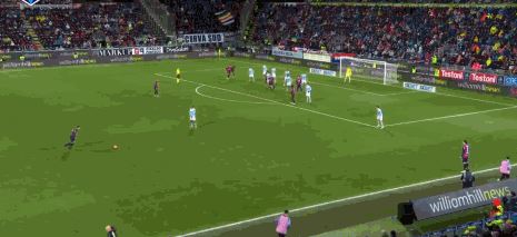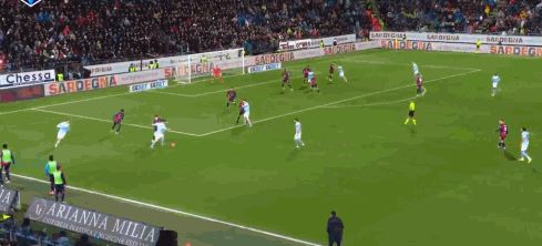 第56分钟,坎比亚索远射,卡利亚里门将飞身扑出