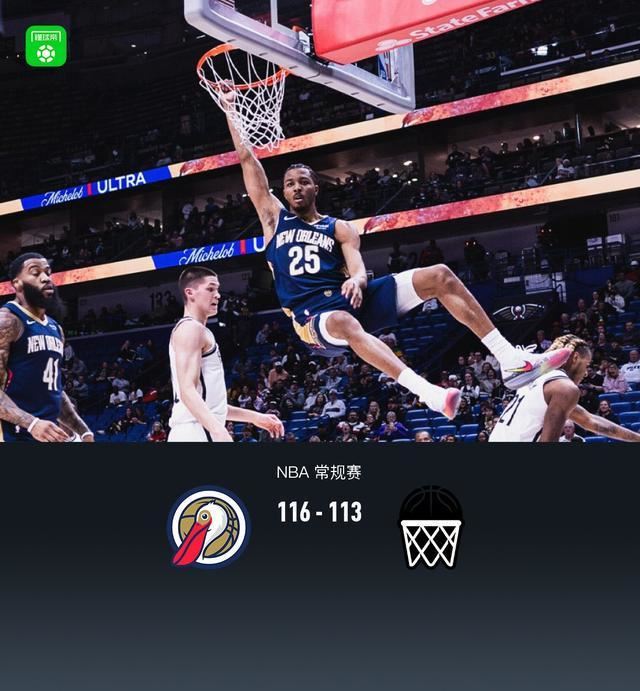 第四节鹈鹕特雷-墨菲拿下13分,篮网德雷克-鲍威尔拿下7分,最终鹈鹕116-113战胜篮网